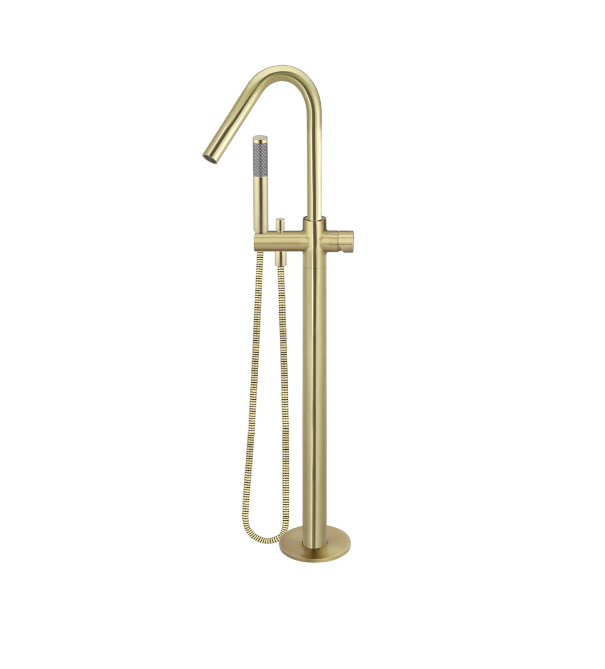The Round Paddle Freestanding Bath Spout and Hand Shower is intuitively designed with practicality in mind. It features a full 360-degree swivel spout motion to create a spacious and luxurious experience.
