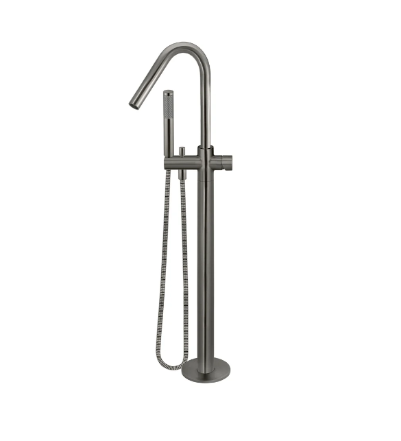 Meir Round Pinless Freestanding Bath Spout and Hand Shower Gunmetal