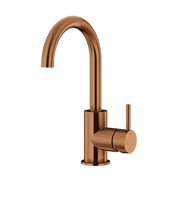 Meir Gooseneck Basin Mixer with Cold Start Lustre Bronze
