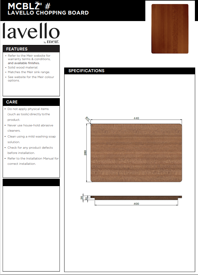 Solid and sturdy, the Lavello Chopping Board has been designed to fit perfectly on top of your Lavello sink to maximise your space.