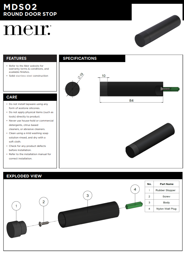 Protect your walls and doors with Meir's contemporary round door stop. Its sturdy design and rubber tip ensure a gentle stop, while its wall-mounted installation makes it easy to use in any room. Constructed from Stainless Steel and available in 7 finishes to match the fittings and fixtures throughout your home.