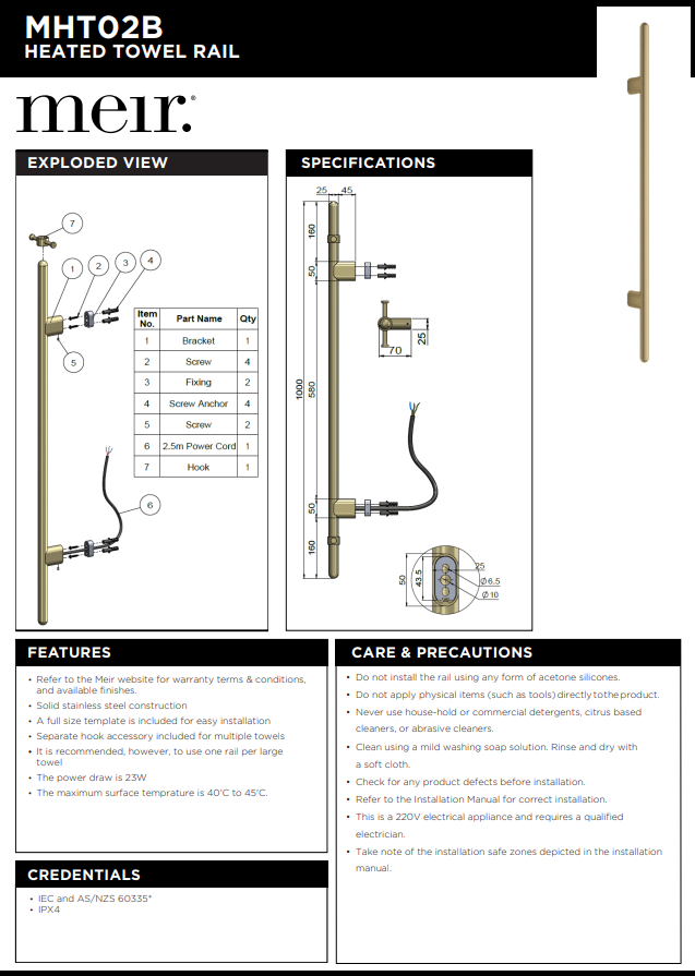 Elevate your bathroom experience with the contemporary Meir Heated Towel Rail, blending practicality and elegance.