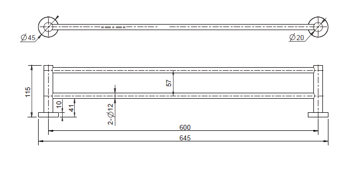 Mirage Double Towel Rail 600mm Brushed Chrome