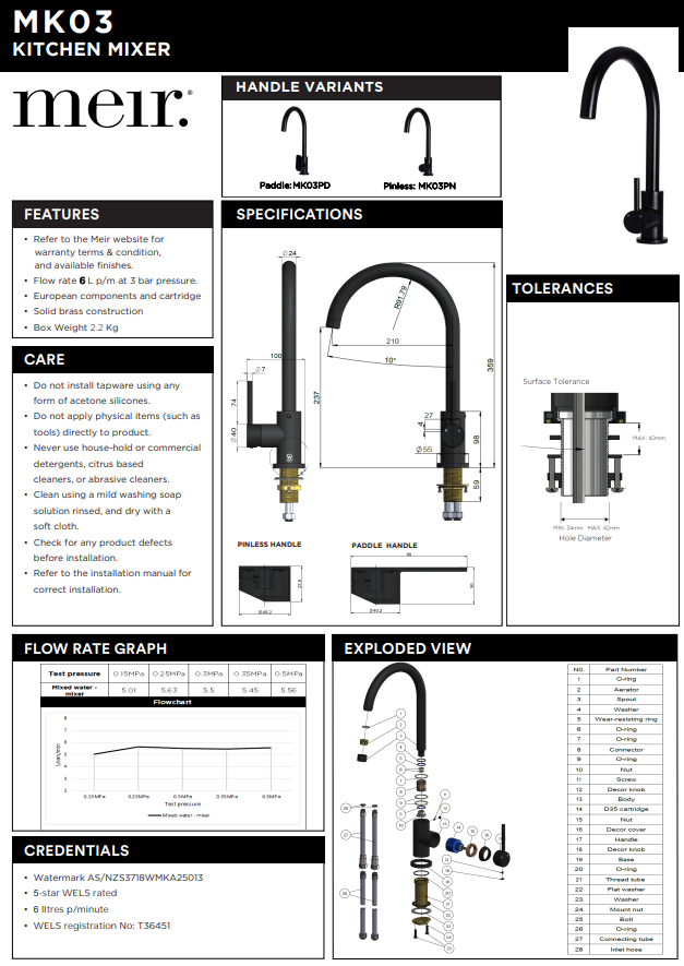 – 5-star WELS rating; water efficiency of 6 Litres per minute