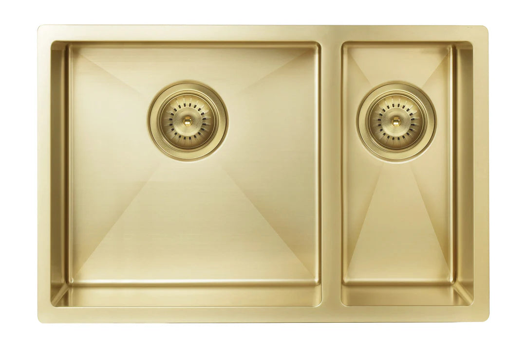 This Stainless Steel 1.5 Bowl Kitchen Sink in Brushed Gold combines cutting-edge nanotechnology and an environmentally friendly brushed PVD coloured finish, to produce a beautiful coating.