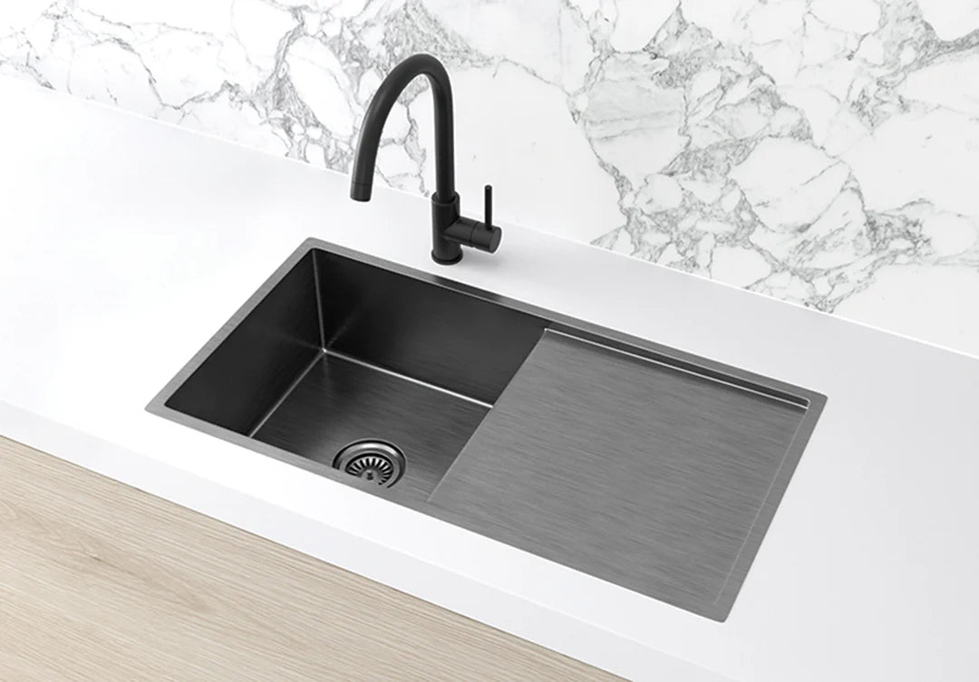 New to our range, this Stainless Steel Single Bowl Kitchen Sink with Drainboard in Gunmetal Black combines cutting-edge nanotechnology and an environmentally friendly Brushed PVD coloured finish, which produces a beautiful coating.