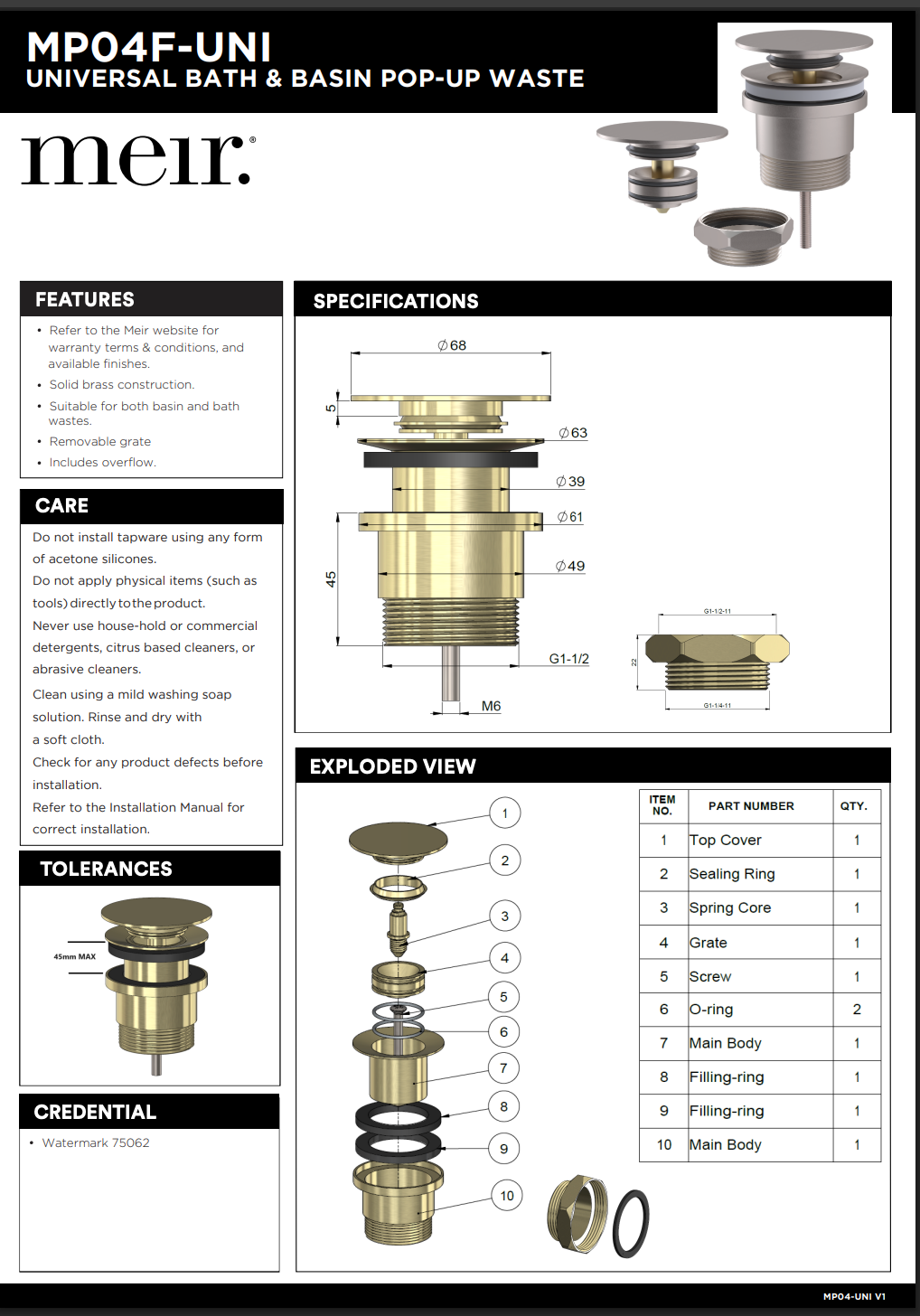 Prioritise safety first with our Meir Universal all-in-one Basin & Bath Pop-up Waste.