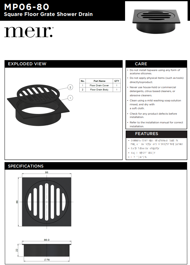This champagne floor grate comes in a number of size options and provides a stylish yet practical finish to any shower, complementing Meir's range of shower heads.