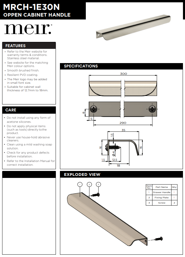 Öppen Edge-Pull 300mm Cabinet Handle (Brushed)