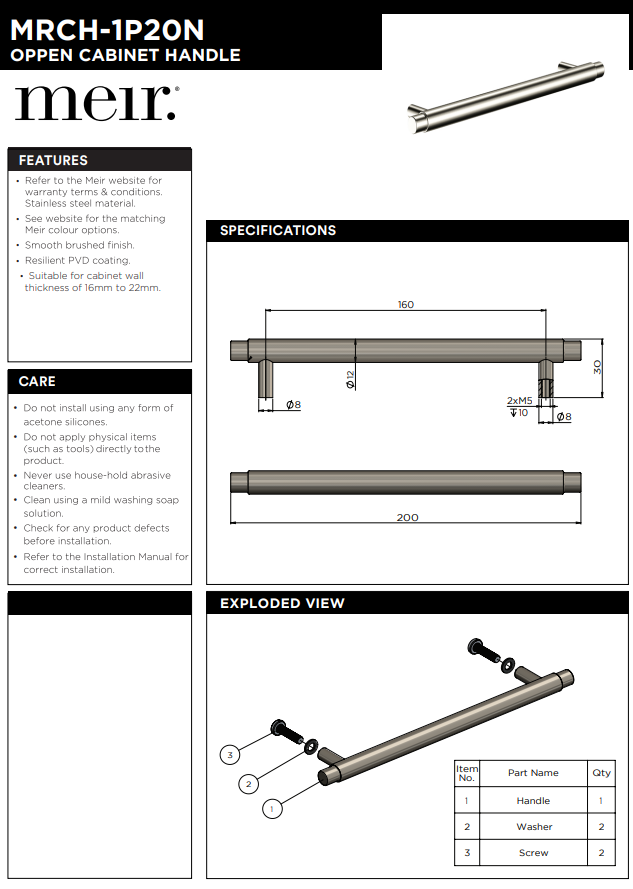 Meir Öppen Round Pull 200mm Cabinet Handle (Brushed) Gunmetal