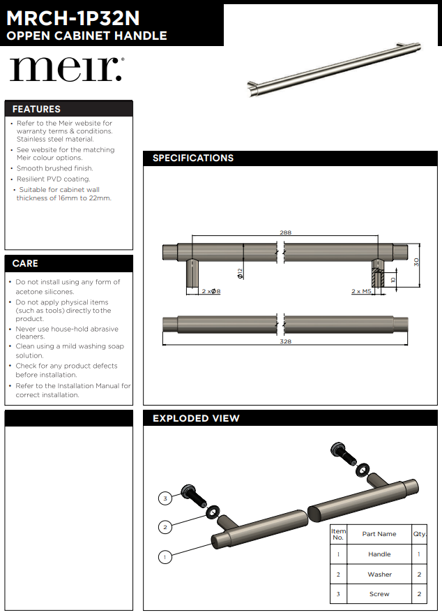 Öppen Round Pull 328mm Cabinet Handle (Brushed)