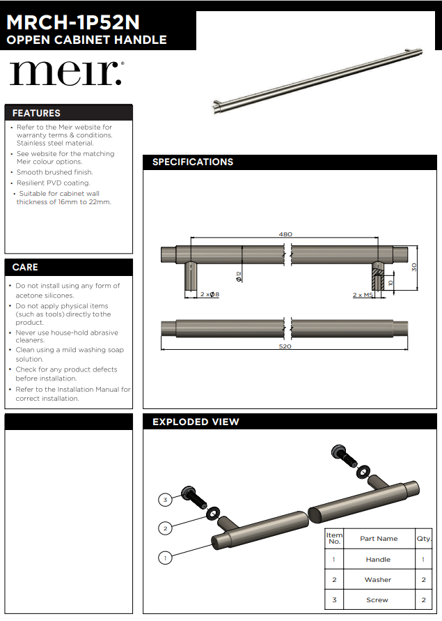 Meir Öppen Round Pull 520mm Cabinet Handle (Brushed) Gunmetal