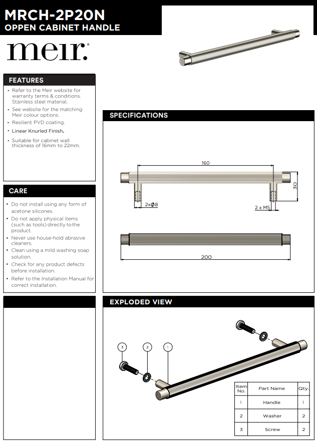 Öppen Round Pull 200mm Cabinet Handle (Linear Knurled)