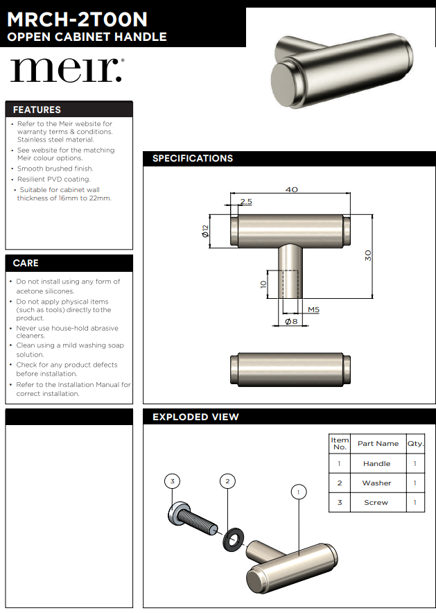 Meir Öppen T-Pull Cabinet Handle (Brushed) Champagne