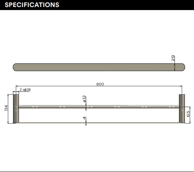 – 800mm Double Rail Design offers maximum space for multiple towels.