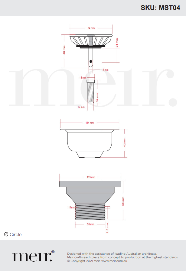 Meir's sink strainer and waste plug basket with stopper is the final luxurious touch to transform your kitchen or laundry.