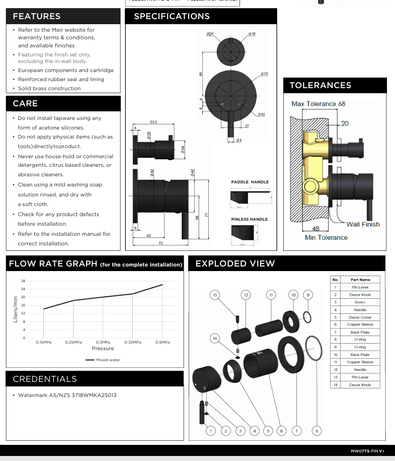 Meir Round Diverter Mixer Pinless Handle Trim Kit (In-wall Body Not Included) Matte Black