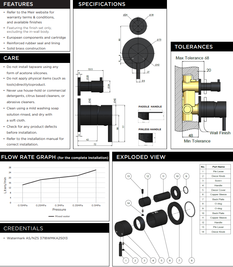 Meir Round Diverter Mixer Pinless Handle Trim Kit (In-wall Body Not Included) Chrome