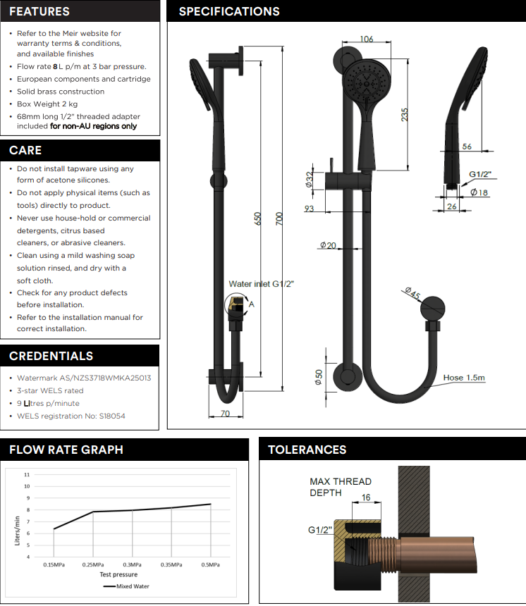 This adjustable matte black shower rail includes a functional hand-held massage wand with three different spray settings, which can also be detached for maximum reach. It also makes cleaning your bath or shower area a breeze.