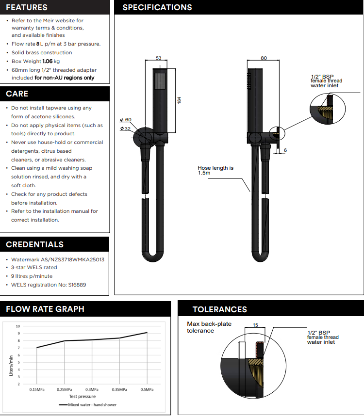 Designed to be used as a complementary piece for the shower or bathtub, this unit features a stunning electroplated matte black hand shower on a convenient swivel connection with a 1.5m hose.