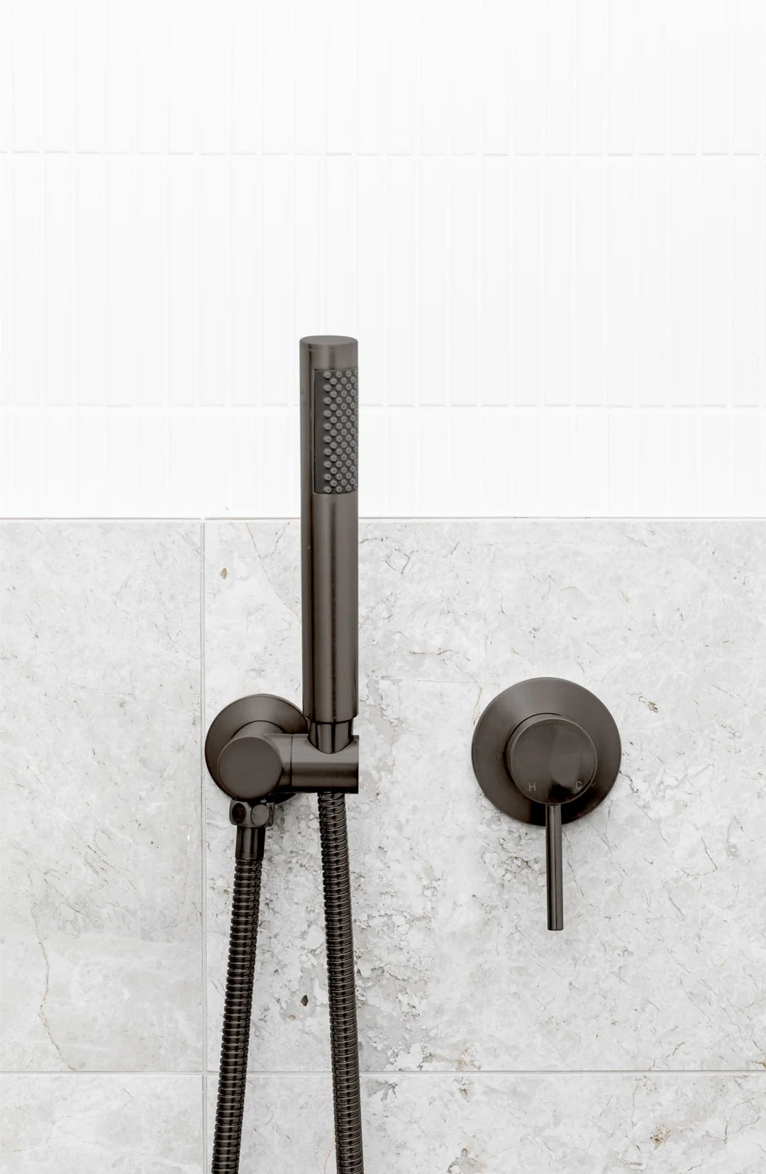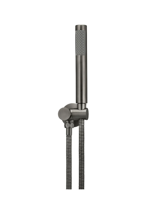 Designed to be used as a complimentary piece for the shower or bathtub, this unit features a stunning PVD brushed nickel hand shower on a convenient swivel connection with a 1.5m hose.