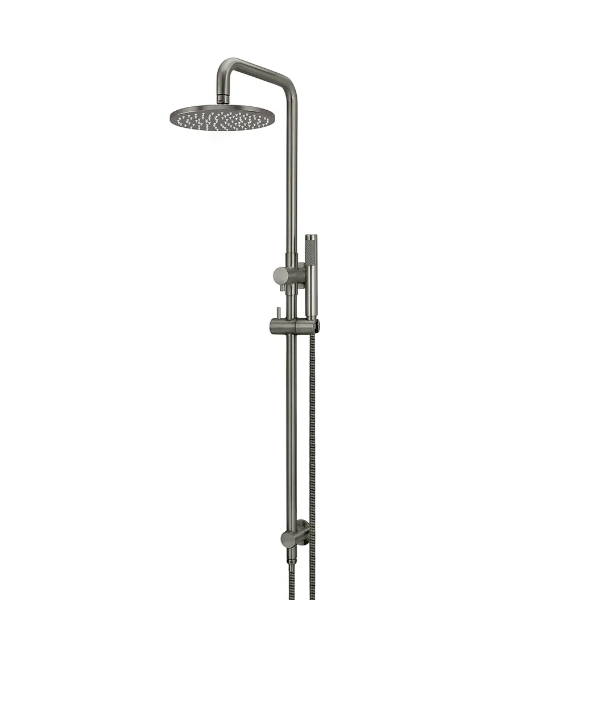Meir Round Combination Shower Rail, 200mm Rose, Single Function Hand Shower Gun Metal