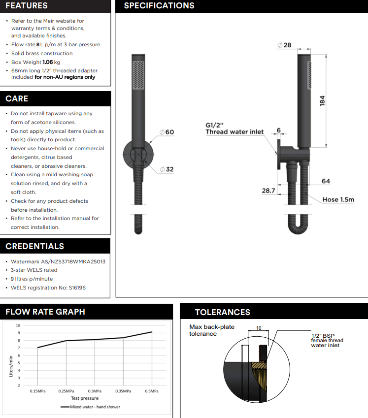 Designed to be used as a complementary piece for the shower or bath, this premium hand shower features a stunning slimline aesthetic, convenient swivel connection and generous 1.5m hose.