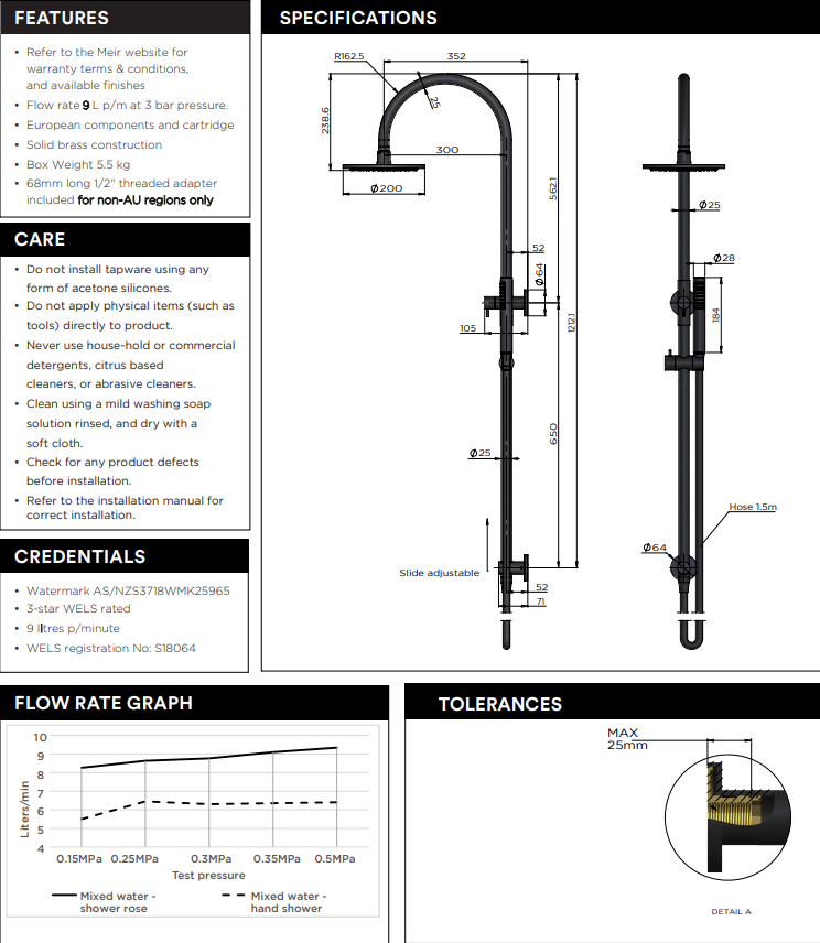 Meir Round Gooseneck Shower Set with 200mm rose, Single-Function Hand Shower Chrome