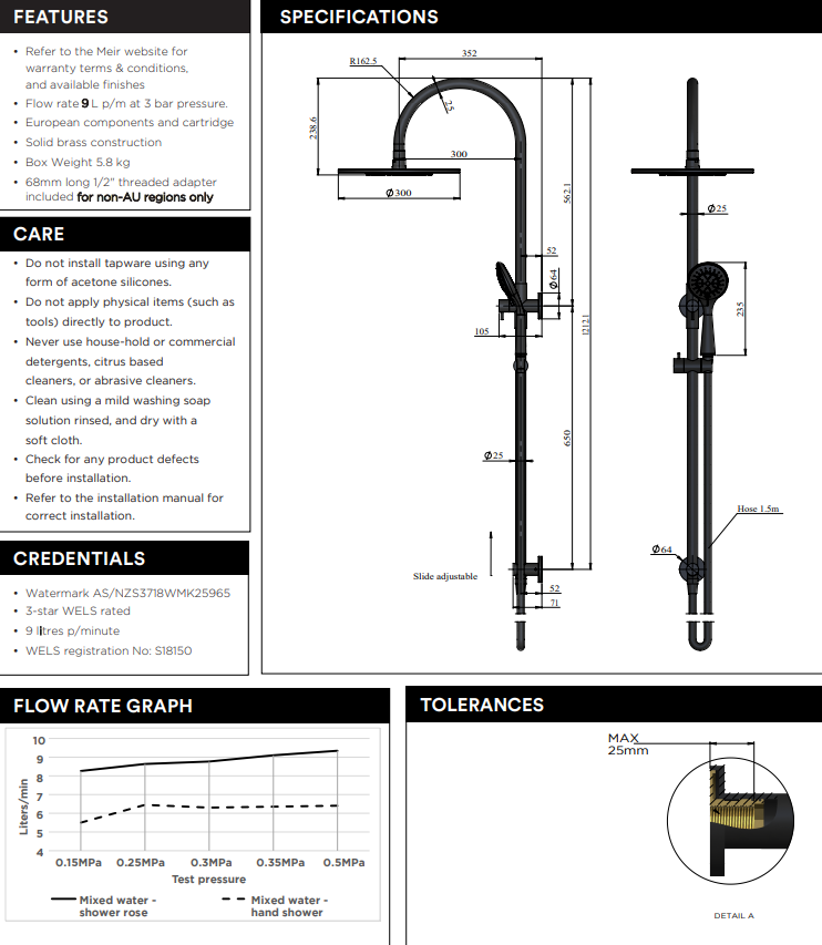 Round Gooseneck Shower Set with 300mm rose, Three-Function Hand Shower