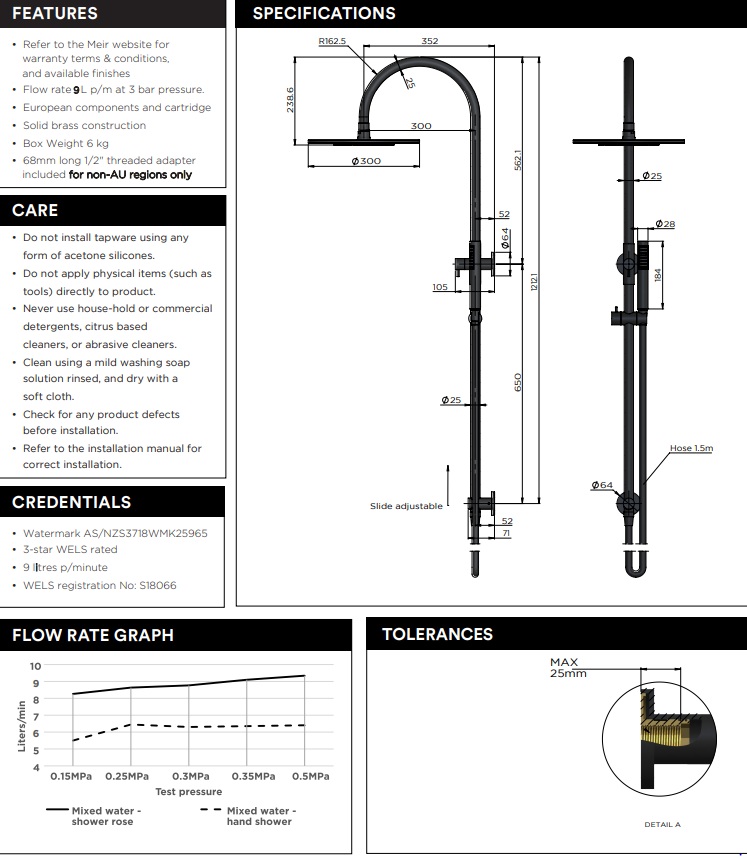 Round Gooseneck Shower Set with 300mm rose, Single-Function Hand Shower