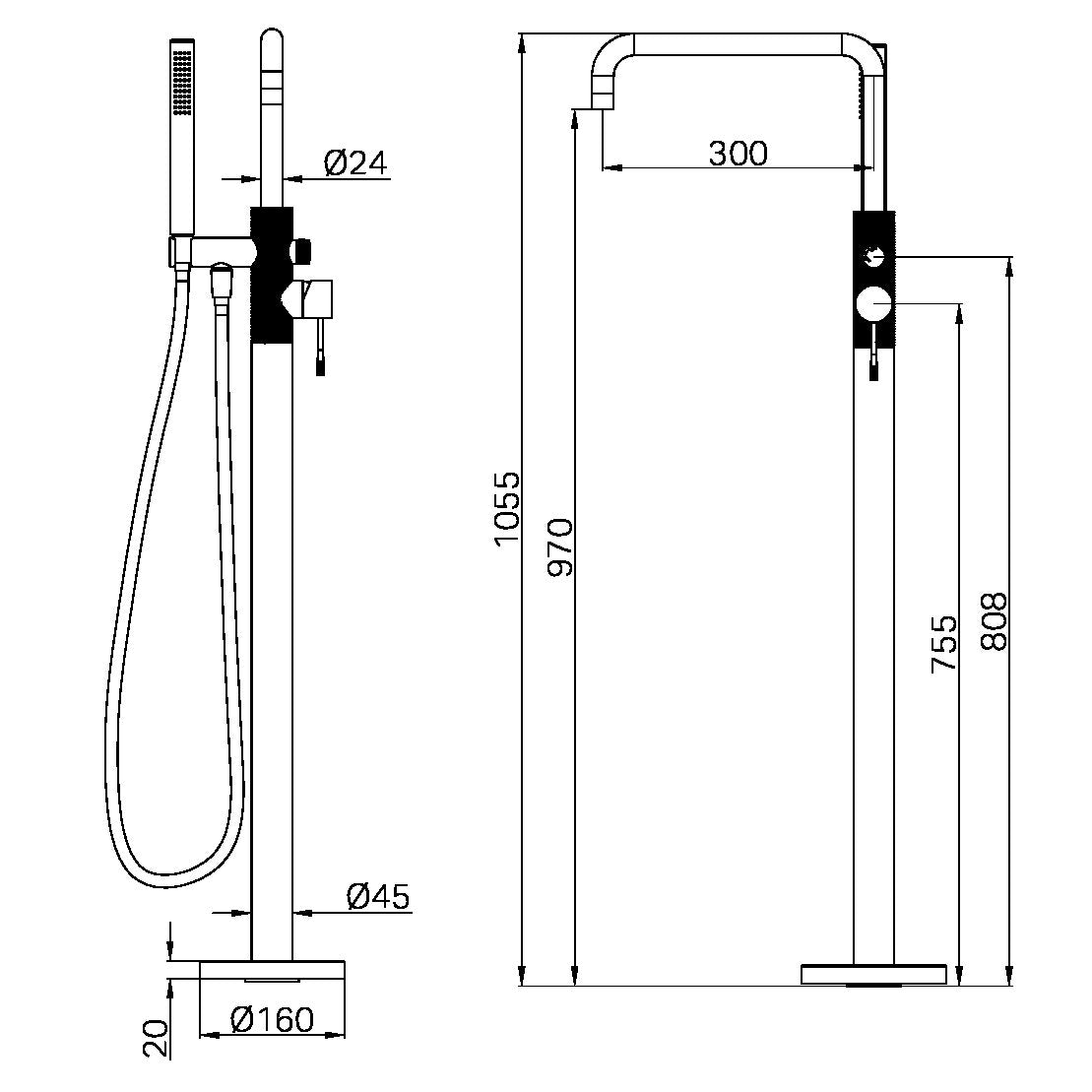Nero Opal Freestanding Bath Filler With Handshower Brushed Gold