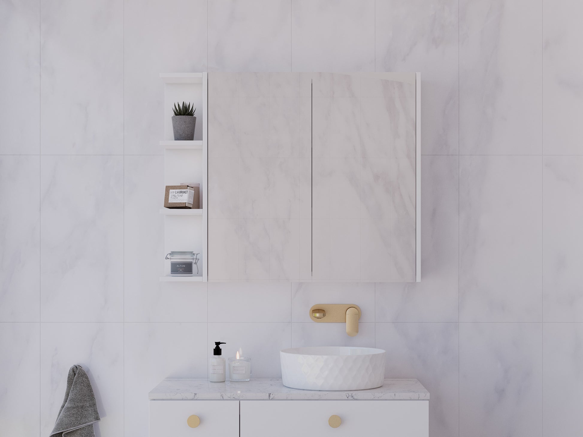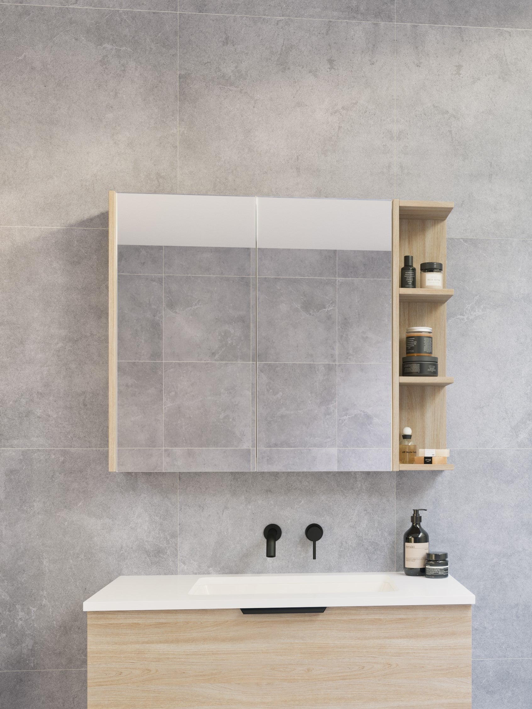 Unleash your interior design potential with the versatile New York shaver. This sophisticated piece features exterior display shelves at one end, offering a beautiful space to showcase your favourite decor. To accommodate your bathroom layout, the shelves can be fully reversed (unless ordered with lighting or power point).
