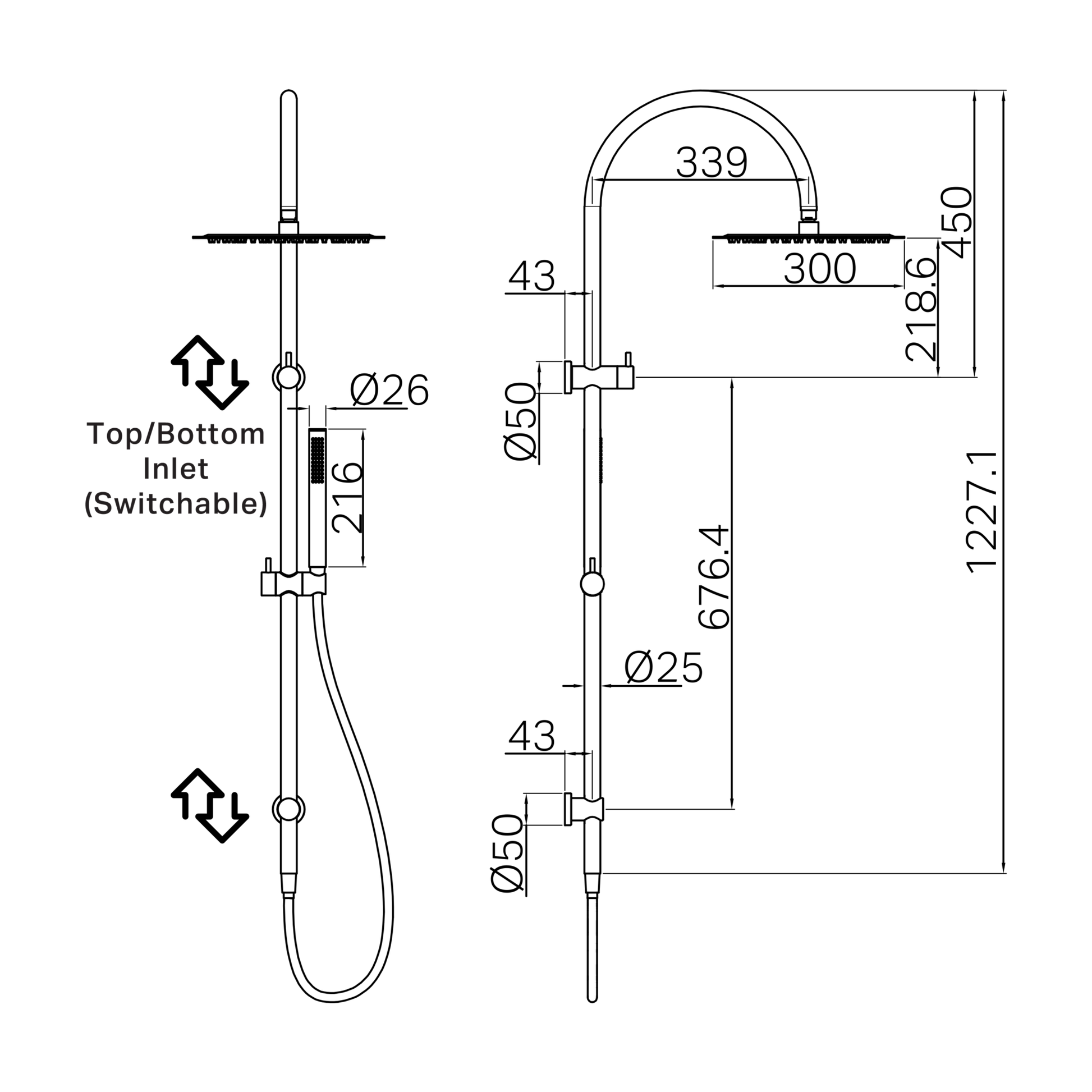 WELS Rating: Overhead Shower 3 Star, 8L/Min, Hand Shower 3 Star, 8L/Min