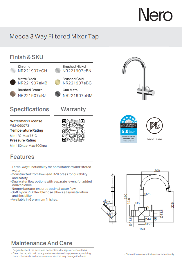 Nero Mecca 3 Way Filtered Mixer Tap Gun Metal (NR221907eGM)