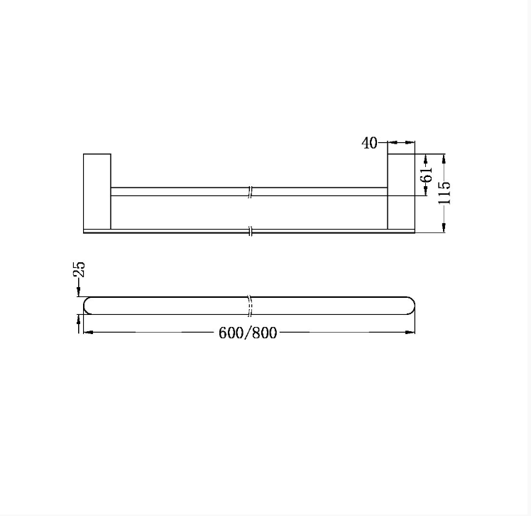 Bianca Double Towel Rail 600/800mm Brushed Bronze