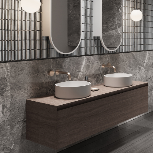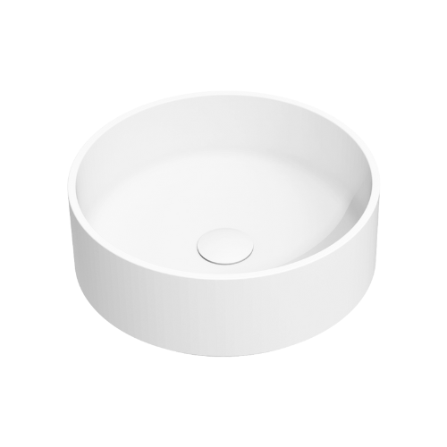 The Lune 380 basin is designed to be bench mounted. Lune basins are supplied with a pop up waste with and matching solid surface plug. Manufactured from solid surface it has a smooth matt finish that is durable and easy to maintain. It is also available with a soft skin option giving your basin a striking two tone effect.