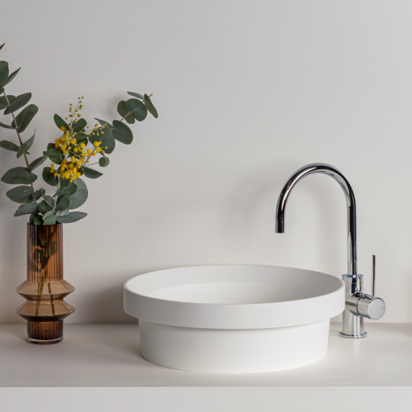 Manufactured from a solid surface, they have a smooth matt finish that is exceptionally hard-wearing and durable. The above counter Père basins are available with Softskin colour options giving the basins a unique two-tone effect.