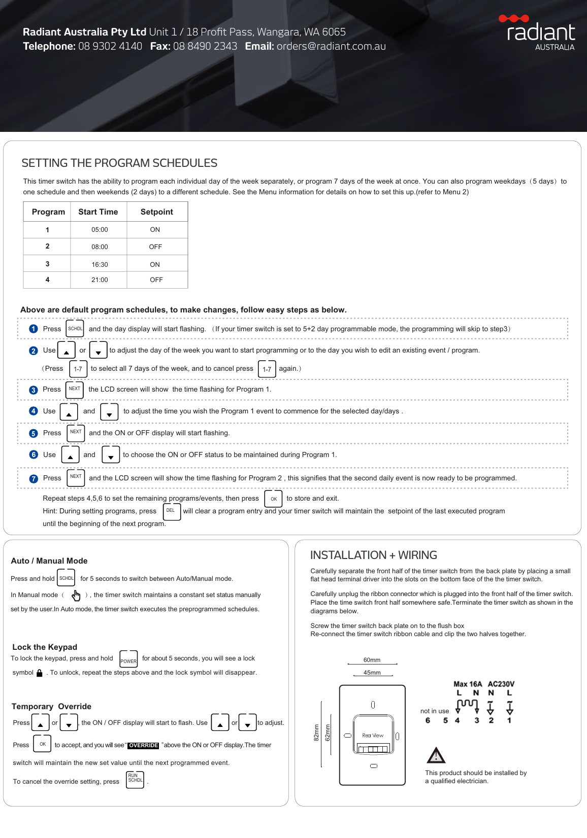 A Digital Timer Switch is an ideal solution for automatically controlling your heated towel rail. No longer will you forget to turn it on, or leave the rail on all day because you can simply program the timer to turn your towel rail on before you get up and turn it off a few hours later when the wet towels have dried. The modern touchscreen display with blue backlit screen (screen only lit whilst programming) will look great on the wall of your bathroom, or if you prefer, wire it into a cupboard so it is out of the way.