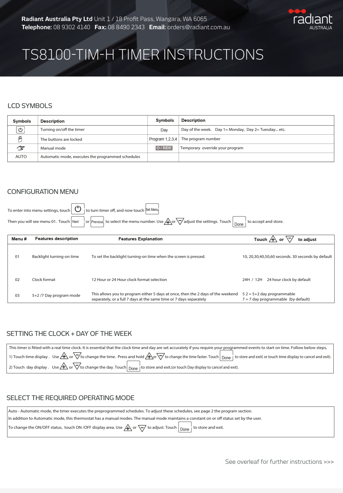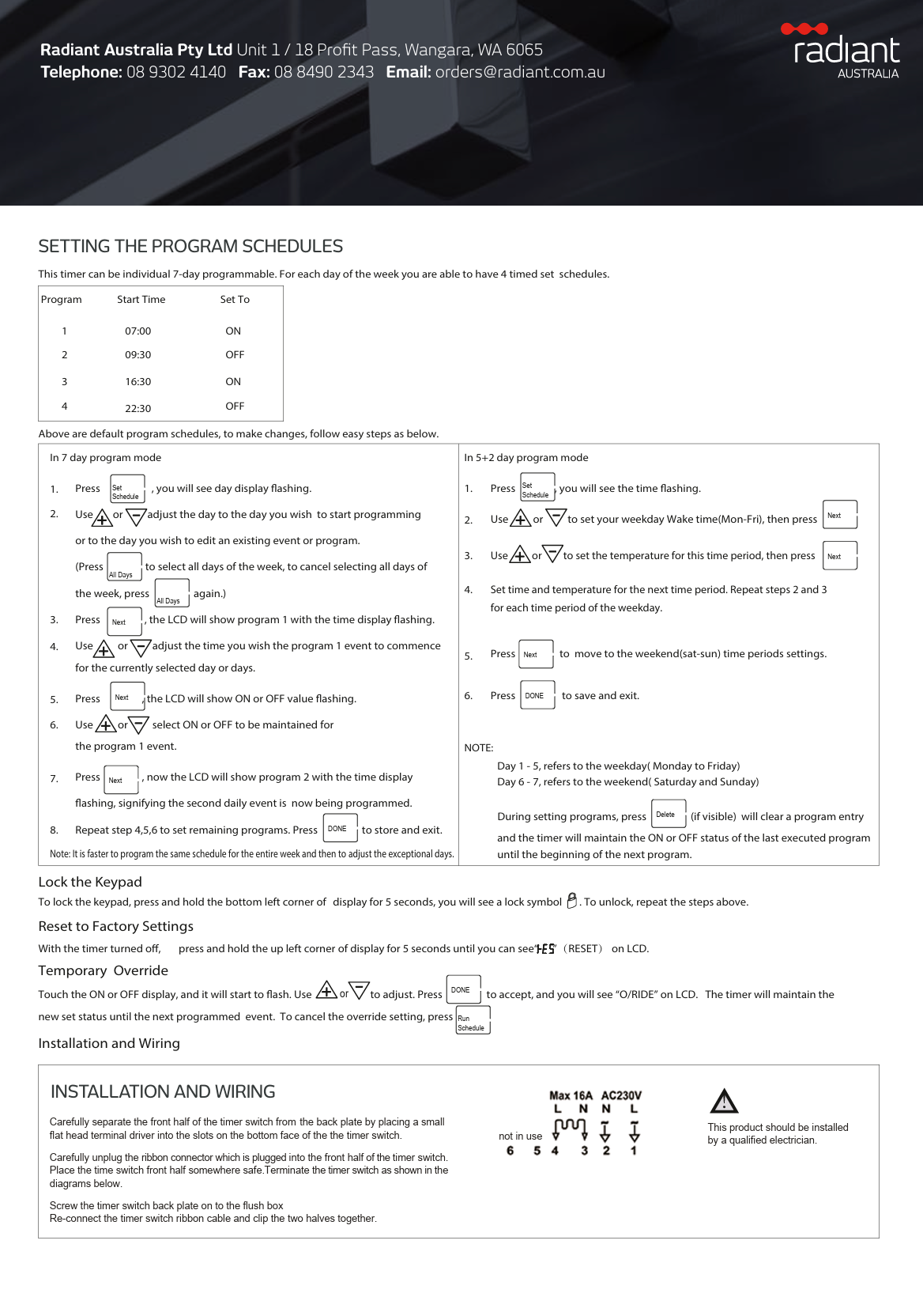 NOTE All Radiant timers are universally compatible with any branded towel rail, plus multiple rails can be run at the same time, assuming they are in the same room and on the same schedule.