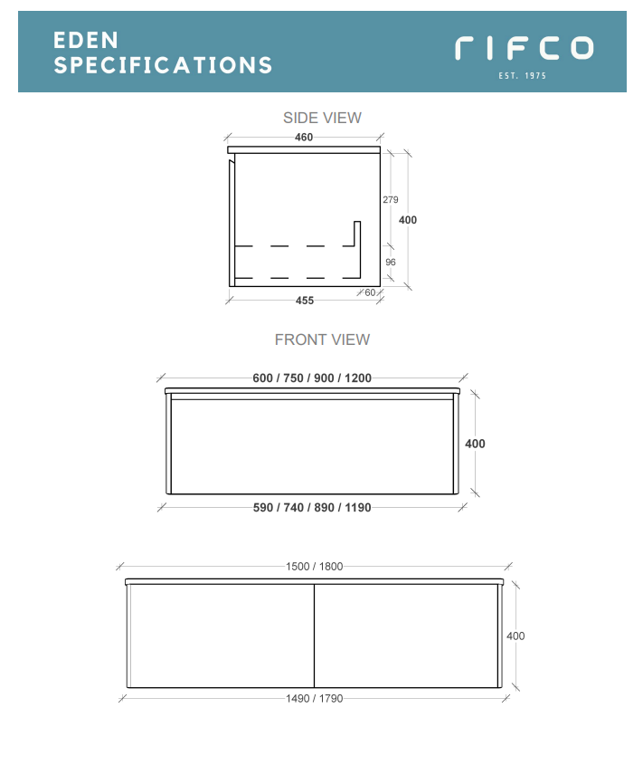 Configuration: All Drawer Unit – 600-1200: Single Drawer | 1500-1800: Two Drawers