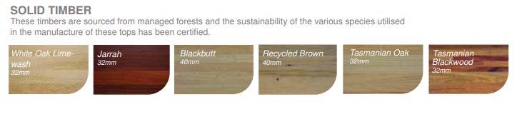 Finish: Timber - American Oak, Blackwood, Stringy Bark or Tasmanian Oak