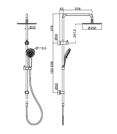 WELS Rating: Overhead Shower 9L/Min, 3 Star, Hand Shower 7.5L/Min, 4 Star