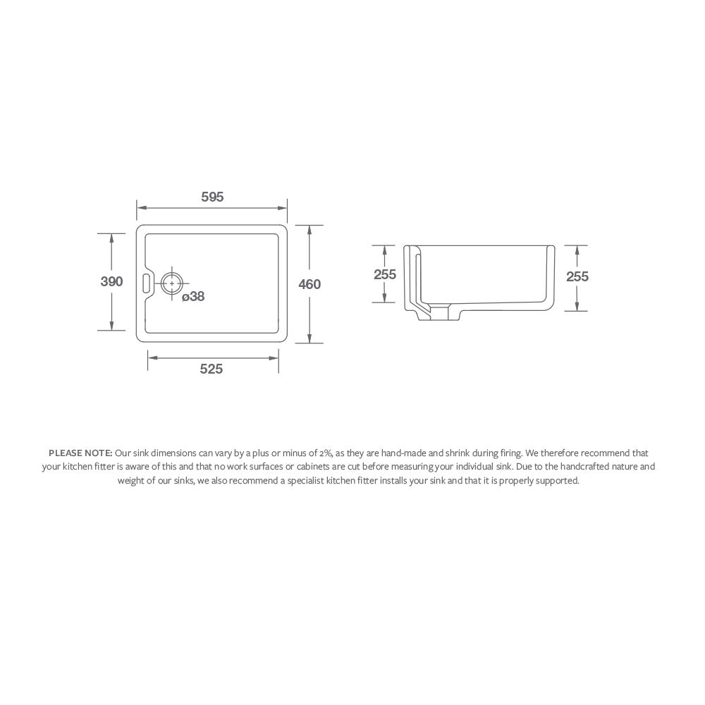 All dimensions are in mm. Dimensions may vary by up to plus or minus 2%; we recommend that customers do not cut out work surfaces or units until they have taken delivery of their sink. Because all our fireclay sinks are handmade using traditional methods, they are 100% unique. Slight variations in the finish from one sink to the next add character and are in keeping with the way these sinks have been made for the past 100 years.