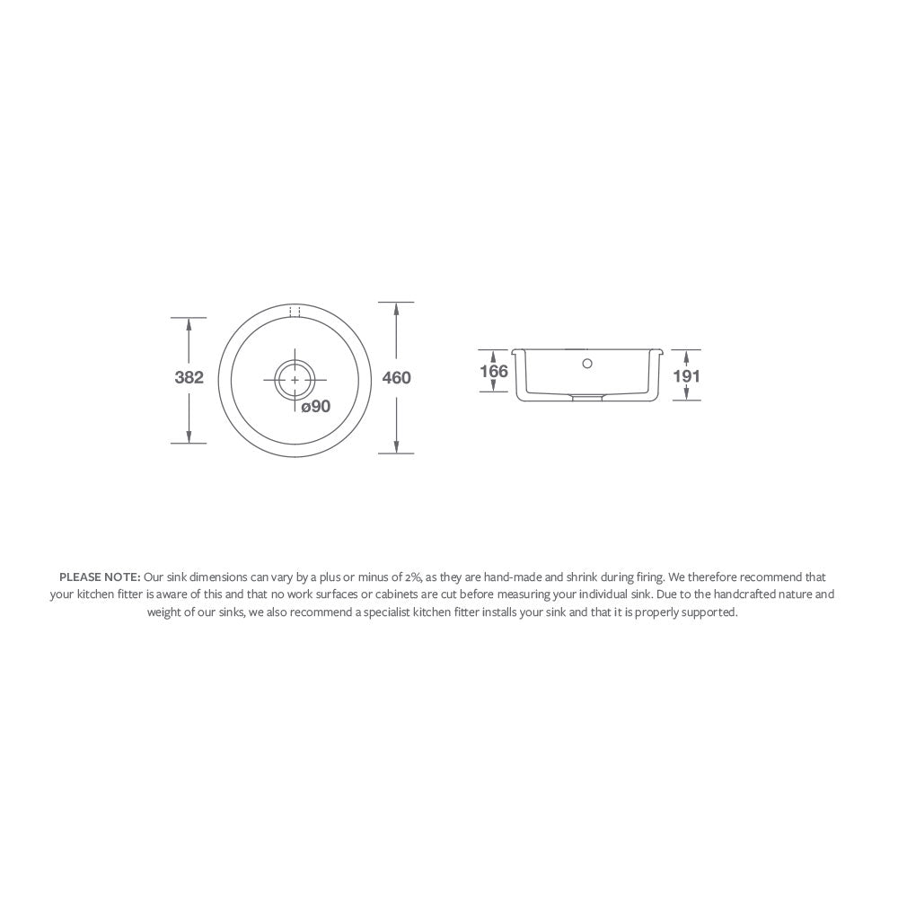 All dimensions are in mm. Dimensions may vary by up to plus or minus 2%; we recommend that customers do not cut out work surfaces or units until they have taken delivery of their sink. Because all our fireclay sinks are handmade using traditional methods, they are 100% unique. Slight variations in the finish from one sink to the next add character and are in keeping with the way these sinks have been made for the past 100 years.