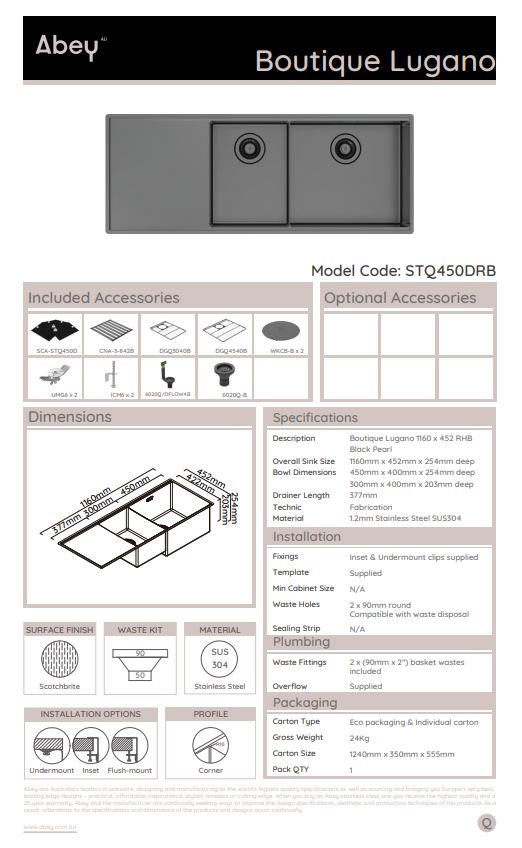Abey Boutique Lugano One & One Quarter Drainer Right Hand Bowl Black Pearl