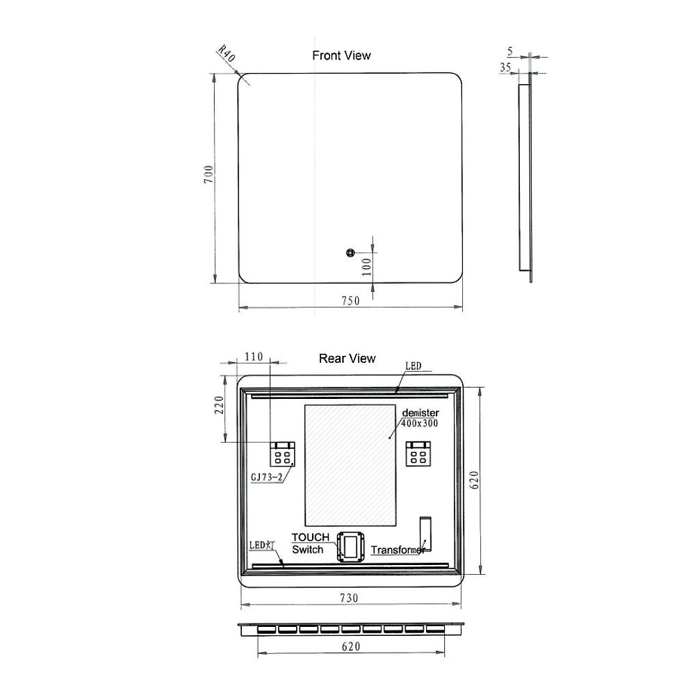 The Eneo mirror is one of the new feature packed LED backlit mirrors from Arcisan. It uses the latest LED technology for long life, low electricity usage and an even spread of light, unlike older flourescent lit mirrors. The lights and demister are operated via the touch switch. Quality is assured through the use of high quality float glass and 100% silvering on the rear that is completely sealed against any moisture penetration. Size is 750mmx 700mm.