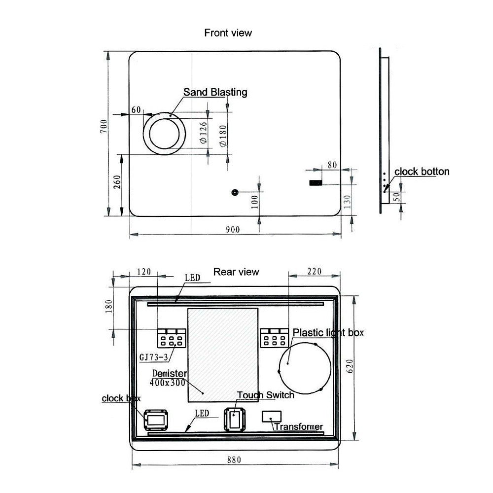 The Eneo mirror is one of the new feature packed LED top and bottom backlit mirrors from Arcisan. It uses the latest LED technology for long life, low electricity usage and an even spread of light, unlike older flourescent lit mirrors. The lights and demister are operated via the touch switch. This model also features an integrated magnifying mirror and digital clock. Quality is assured through the use of high quality float glass and 100% silvering on the rear that is completely sealed against any moisture penetration. Size is 900mm x 700mm.