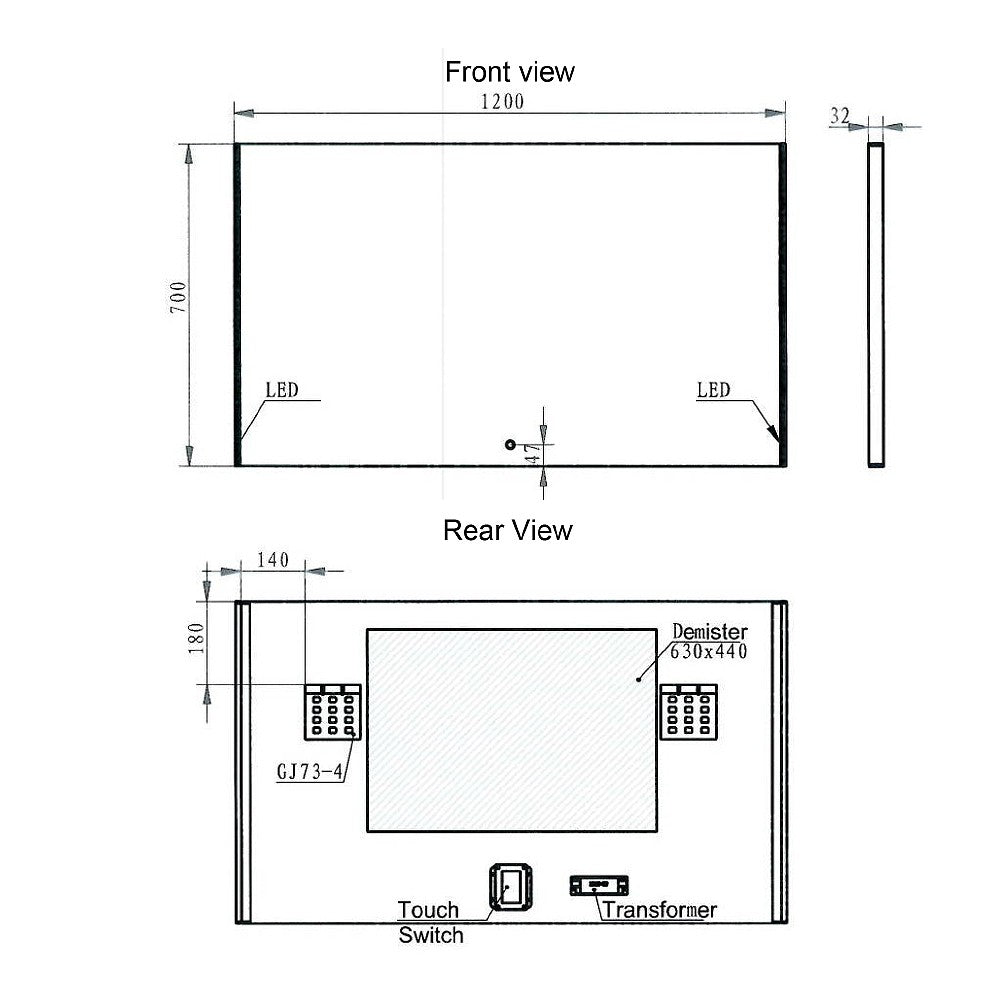 The Kibo mirror is one of the new feature packed LED side lit mirrors from Arcisan. It uses the latest LED technology for long life, low electricity usage and an even spread of light, unlike older fluorescent lit mirrors. The lights and demister are operated via the touch switch. Quality is assured through the use of high quality float glass, highly polished metal sides and 100% silvering on the rear that is completely sealed against any moisture penetration. Size is 1200mm x 700mm.