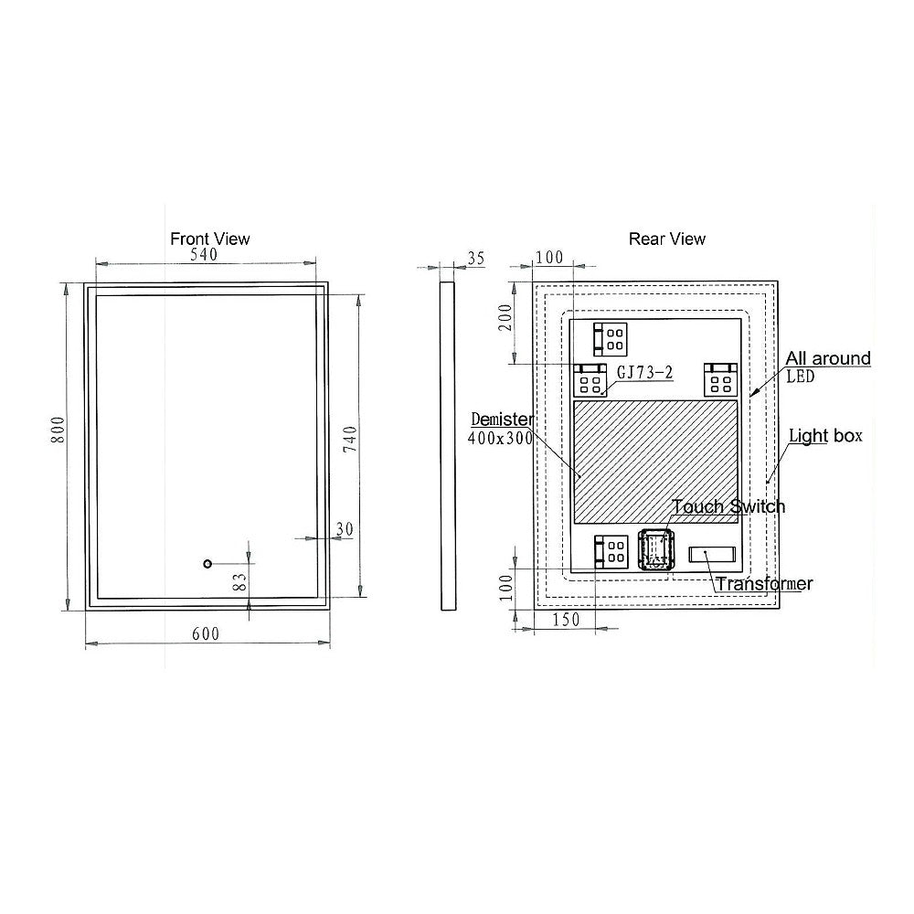 The Kudos mirror is one of the new feature packed LED backlit mirrors from Arcisan. It uses the latest LED technology for long life, low electricity usage and an even spread of light, unlike older fluorescent lit mirrors. The lights and demister are operated via the touch switch. Quality is assured through the use of high quality float glass and 100% silvering on the rear that is completely sealed against any moisture penetration. Size is 600mmx 800mm.