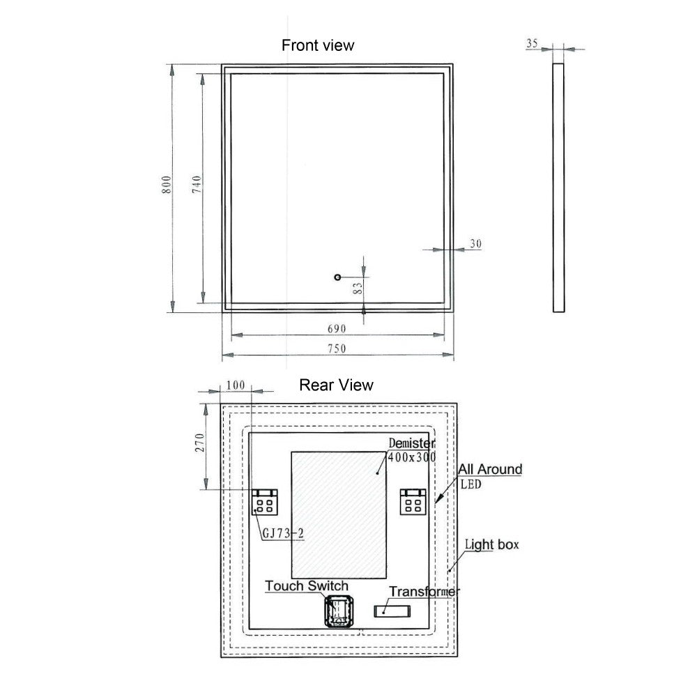 The Kudos mirror is one of the new feature packed LED backlit mirrors from Arcisan. It uses the latest LED technology for long life, low electricity usage and an even spread of light, unlike older fluorescent lit mirrors. The lights and demister are operated via the touch switch. Quality is assured through the use of high quality float glass and 100% silvering on the rear that is completely sealed against any moisture penetration. Size is 750mmx 800mm.
